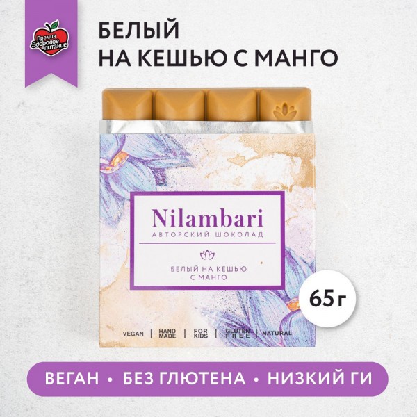 Ingredients: cocoa butter, natural unrefined, organic coconut sugar, cashew nuts, coconut flour, mango, buckwheat tea.