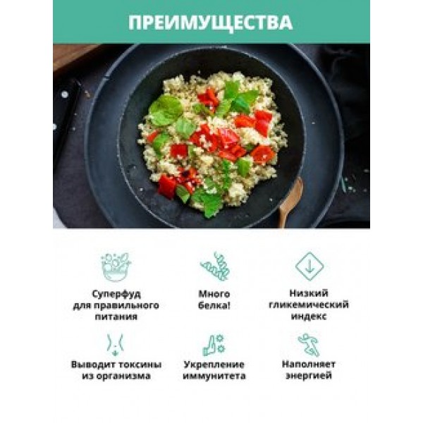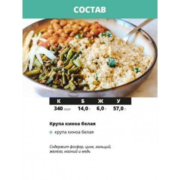 - Ценный источник растительного белка, киноа содержит больше, чем многие виды мяса. В то же время белок киноа имеет сбалансированный состав аминокислот, аналогичный составу белка в молочных продуктах.